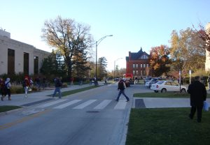 Be alert while driving near school buildings and college campuses, alike. College campuses, such as Iowa State University, are likely to have students commuting at all hours of the day.