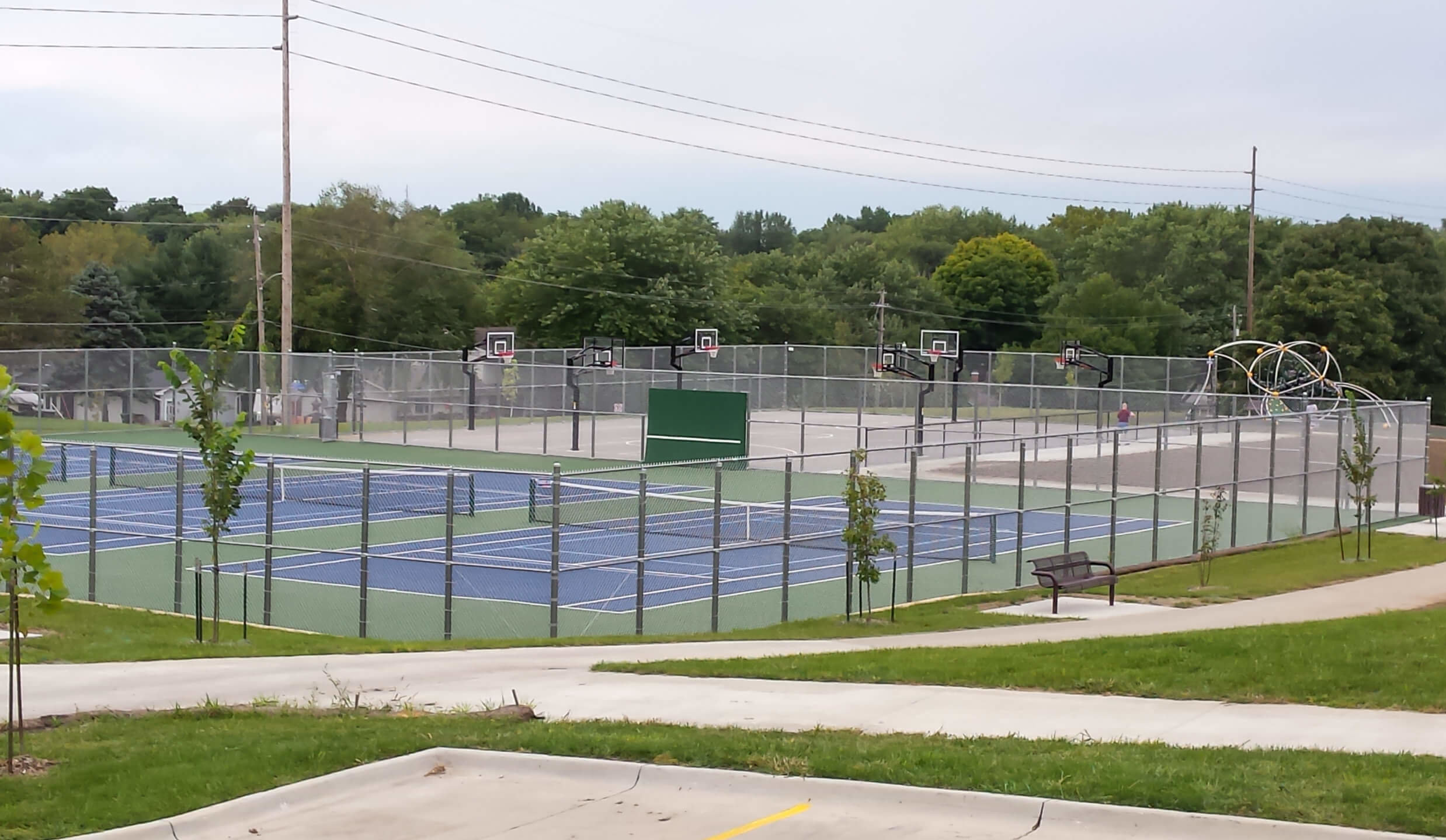 A similar project in Altoona saw the removal and replacement of two tennis courts in Village Park with markings for pickleball added, as well. The Altoona Parks & Recreation Department commissioned our team to design and oversee this project, which includes two regulation tennis courts, a new all-weather coating, nets, and fencing. Site adjustments were necessary to accommodate the regulation size courts.