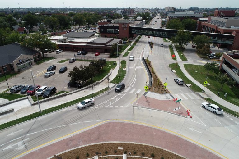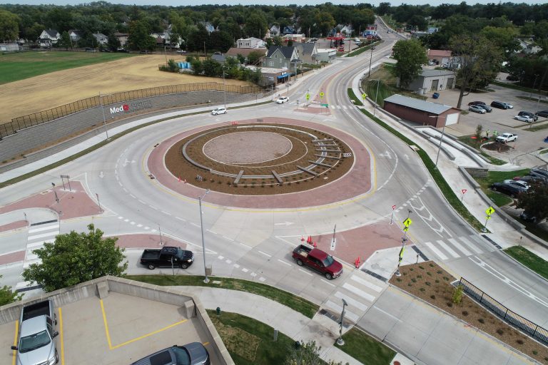At the heart of the project is Cedar Rapids’ first multilane roundabout, replacing a complex, high-crash intersection where 8th Avenue, 10th Street, and Mount Vernon Road converge. The new roundabout reduces conflict points, calms traffic, and improves efficiency while enhancing pedestrian safety.