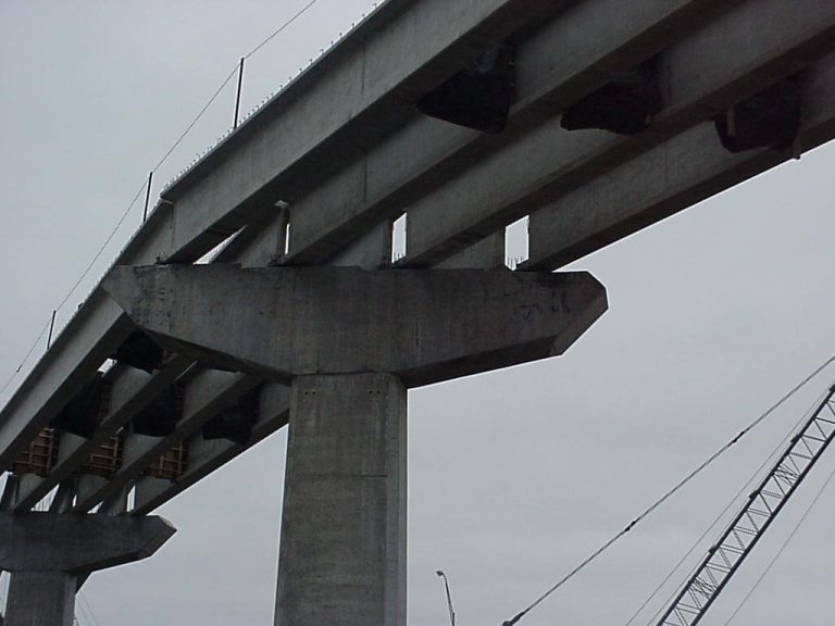 Both bridges use existing technology in the form of straight, precast concrete beams. However, these straight beams were used in a unique manner to complete the curved superstructures of the bridges. Computer software facilitated the use of coordinate geometry to achieve an elegantly simple beam layout, significantly reducing material and construction costs. The majority of the beams in both bridges are of standard lengths and are commonly available. Many of the beams in a given span are also the same length, further simplifying the construction process.