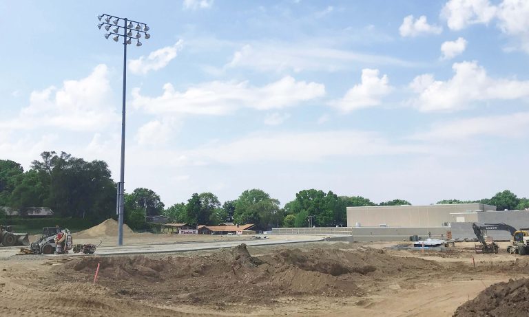 To make room for the high school expansion, the existing baseball field and outfield practice areas had to be removed. These areas are also used for physical education classes, band, football, and soccer practice. A sizeable green space was left intact behind the school for classes and extracurricular use, while a new Baseball Field Complex was relocated a short distance from the school complex. The new complex includes varsity and junior varsity fields, each enclosed with fencing and include foul ball poles, upgraded dugouts, and a new scoreboard. The varsity field has a synthetic turf infield and natural turf outfield with a rock and drain tile subbase. The junior varsity diamond features a dirt infield with a natural turf outfield.