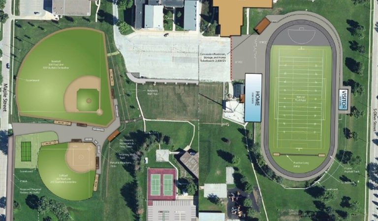 Also at the high school, four new tennis courts are scheduled for construction north of the track. These new courts, located close to where they’re needed, allows the tennis courts at the other site to be replaced with much-needed parking for Washington Elementary School. A newly expanded concession stand rounds out the renovations for the high school location.