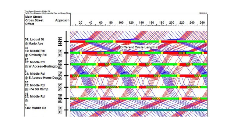 To minimize those issues in their community, Bettendorf city leaders retained the services of Snyder & Associates to update traffic signal timing and coordination plans at 54 traffic signal installations along numerous corridors throughout the city. An additional four signalized intersections in the Cities of Davenport and Riverdale and one unsignalized intersection in Bettendorf were also included in the modeling and analyses.