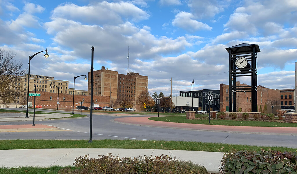 The Snyder & Associates team performed a traffic study and provided streetscape design services for the City of Fort Dodge, which investigated the creation of a continuous corridor that connects the west side of town with the east side, allowing the downtown business district to serve the entire community better. Numerous alternative routes were developed, and different intersection treatments were evaluated as part of this traffic analysis. Ultimately, our team advocated for creating the Cross-Town Connector along 1st Avenue South, which included the construction of two roundabout intersections and removing 13 traffic signals. During the upgrade process, the overhead utility infrastructure was buried along the corridor to improve the aesthetic appeal and provide better pedestrian accommodation within the narrow rights-of-way. This corridor transformation significantly improved the operations of the local street network.