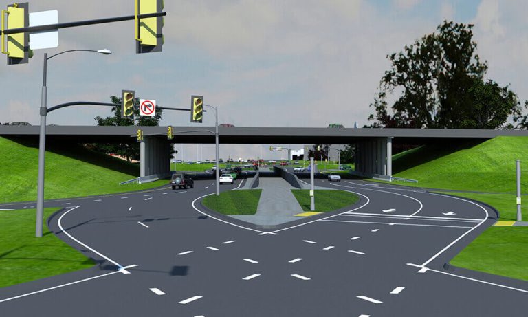 - Construction of a Diverging Diamond Interchange (DDI) at the East 1st Street location