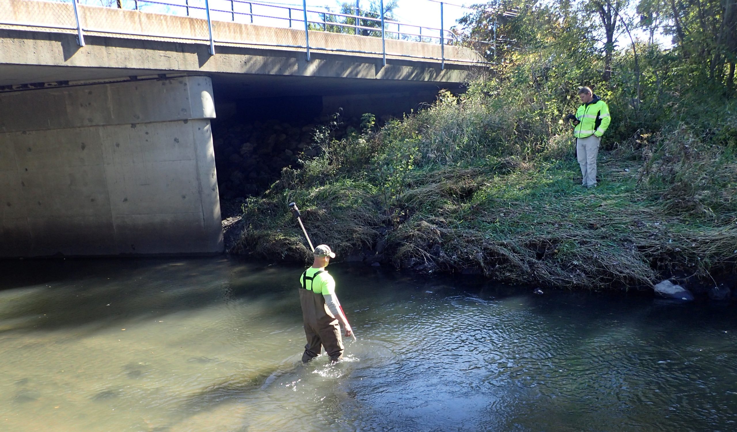 Our environmental professionals check creek conditions near one of the bridge locations.