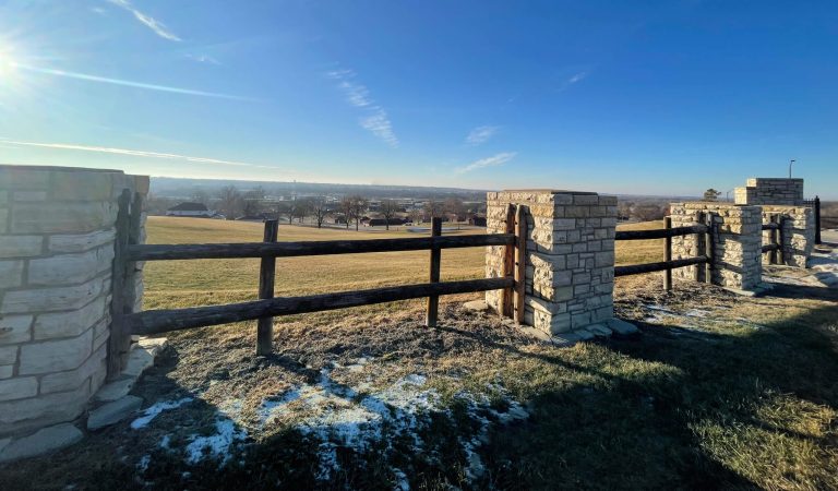 Since the outer coping of the historic pool was still visible, it was repurposed into the design to form the outer border of a multifunctional plaza area. The coping was then surrounded by washed river rock to create a decorative border encircling the space. A portion of the plaza was paved with distinct colored, stamped concrete and paver inserts, adding depth and interest. A free-standing, open pavilion was placed on the southern edge of the plaza. The remaining pool interior space was transformed into a grassy parade ground that can be used for public events or military training.