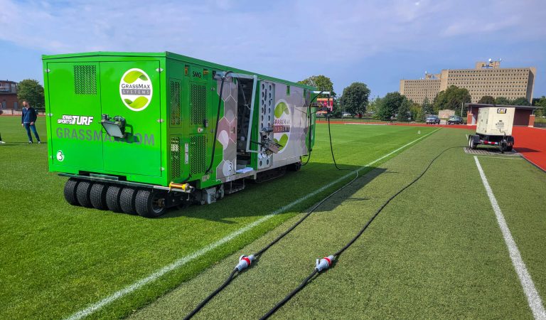 A hybrid stitched field provides the safety and playability of a natural grass surface with the durability and versatility of a synthetic playing field. After the new sod was installed on the soccer field, the synthetic hybrid stitching process was completed in September 2023.