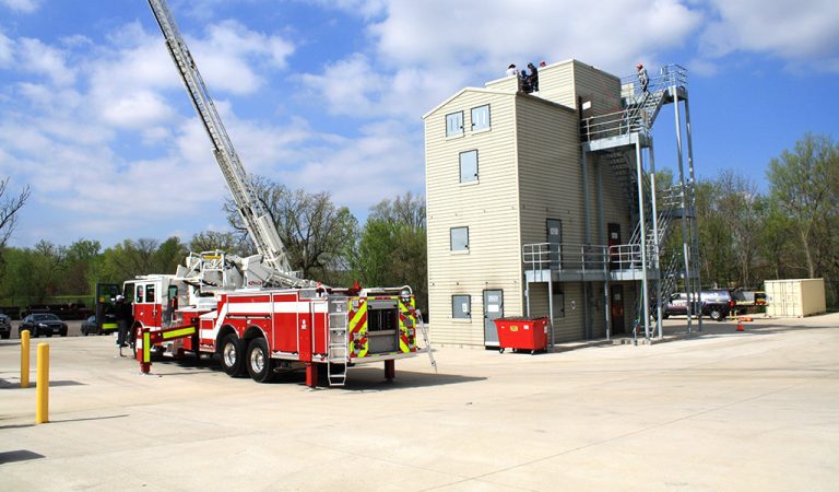 Additional storage for police and fire department equipment and vehicles was also designed into the structure. A three-story, fire training tower, and fire truck pump training area further increases the multi-use capabilities of this sprawling complex. A massive outdoor canopy provides a cover area for materials storage.