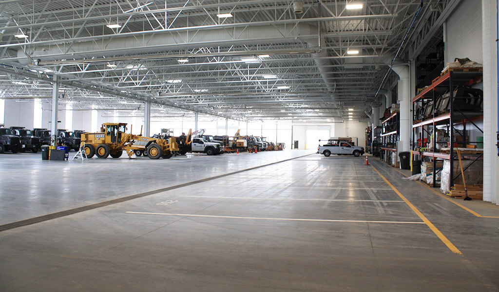 The resulting Public Works Master Plan called for the initial construction of a 100,000 square foot building to house the Streets and Water Departments, as well as their associated vehicles and equipment. This vast structure was constructed using highly durable, cost-effective materials that are easy to maintain. The building interior includes shop spaces, large-scale machinery storage, vehicle & equipment wash bays, and a mezzanine storage area with elevator and forklift access.