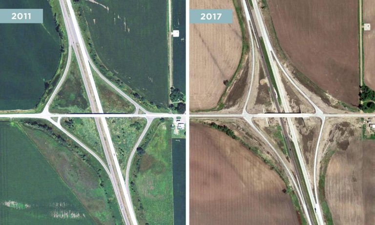 - An outdated interchange geometry that resulted in severe angles where the ramps intersected with the county road, as well as encompassing a large existing footprint.