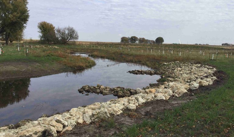 The Niebuhr family farm in Northeast Iowa contains a perennial stream called Buck Creek, bordered by fields that were historically used for cattle pasture. Over time, increased velocities through the straightened creek incised the channel and caused significant erosion. Additionally, once pasture practices were discontinued years ago, the floodplain surrounding the channel had overgrown with reed canarygrass.