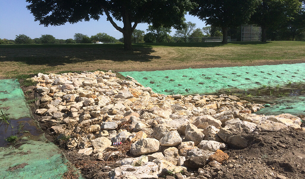 Under previous construction efforts, portions of the stream had storm pipes installed while the remainder of the channel was filled in. Years later, both the piped and channelized sections were determined to be unstable after experiencing significant erosion, leading to sediment transport. This not only caused safety concerns along the banks but diminished the overall water quality of the park’s pond. A stream channel restoration and bank stabilization project was needed to mitigate these issues. However, the project couldn’t get off the ground without adequate funding.