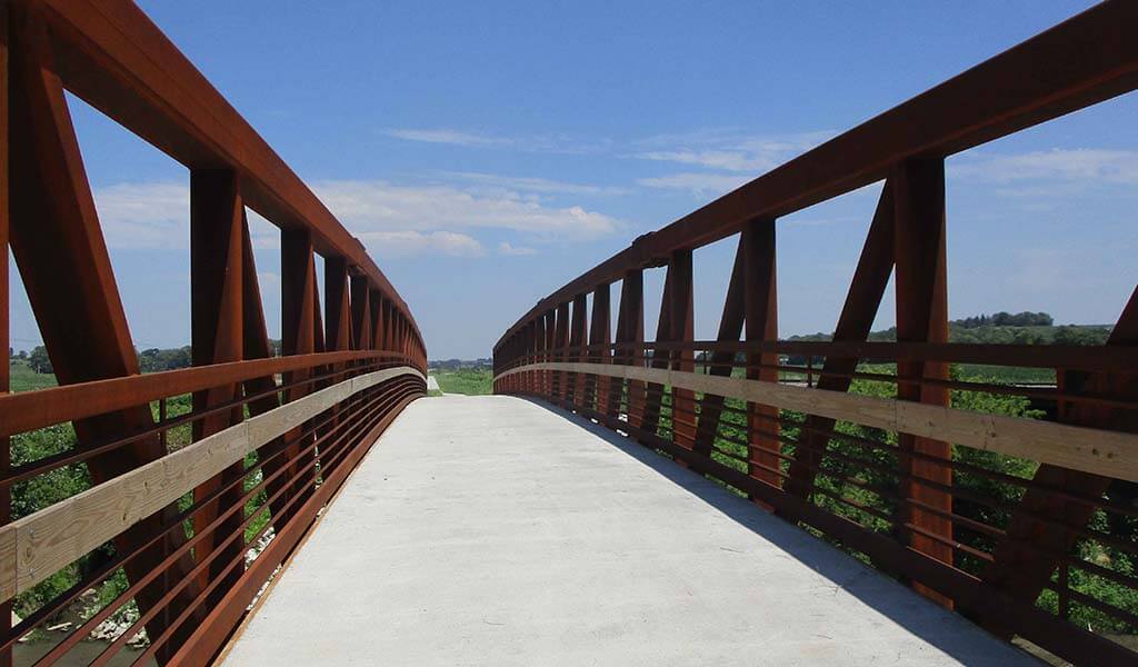 Now standing at more than 50% complete, the dream of a completely off-roadway, multi-use trail network spanning the entire country keeps taking steps to becoming reality. When completed, the Great American Rail Trail will extend over 3,700 miles from Washington D.C. to Washington State. The success of this ambitious project has relied on countless local communities spearheading the construction of their trail sections. In western Iowa, the most recent addition to this trail system includes the Railroad Highway Trail just outside of Council Bluffs.