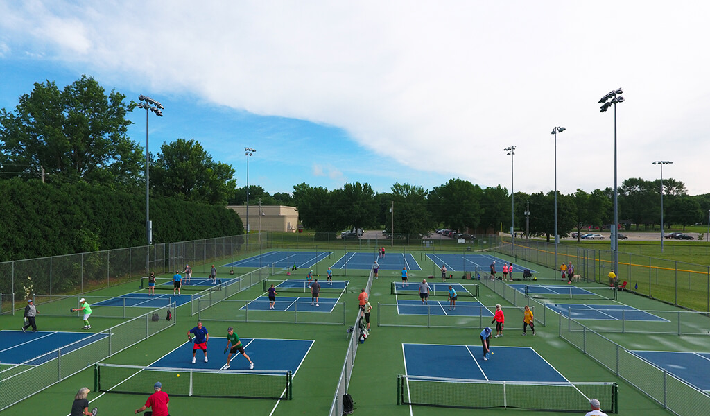 The Iowa City Parks & Recreation Department went in a different direction for their project in Mercer Park. An existing six tennis court complex was converted to retain three full-size tennis courts and add eight pickleball courts. Snyder & Associates professionals evaluated the current athletic courts for resurfacing and expansion needs. Our sports field design team then developed a plan that included new asphalt, partial fencing, posts, nets, resurfacing, and striping.