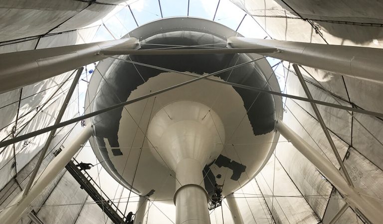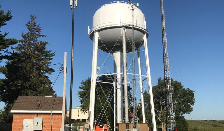Another service our team provided for the community was rehabilitating the town’s water tower. More than just performing general maintenance on the steel and coordinating the paint application, as the municipal engineer for the community, we also investigated environmental concerns (presence of asbestos) and other issues that must be dealt with before paint could be applied. We also coordinated the temporary relocation of aerial antennas on the tower during the rehabilitation project. This process also included close collaboration and input from the community in selecting the paint color, logo location, and other aesthetic features that affected the final design.