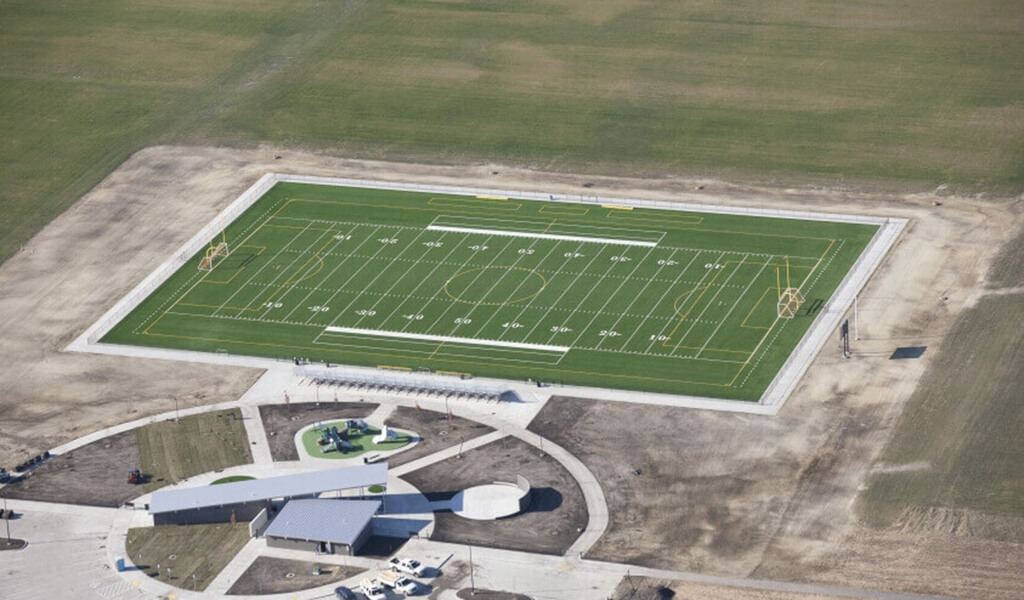 Based on the city’s master planning efforts, the facility was designed as a high-use soccer complex with the amenities necessary to serve the needs of tournament and league play. Built on former agricultural ground, the amenities include eight full-size, natural turf soccer fields with irrigation and six full-size, non-irrigated practice fields. A centrally located, synthetic-turf tournament field was designed to accommodate football and soccer matches. Adjacent to this field is the concession and restroom buildings, an awards plaza, playground, and an open lawn gathering space.