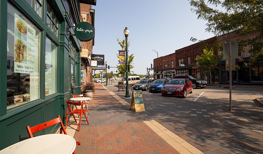 By the mid-2010s, however, much of the Parkade had suffered from deteriorating conditions and required repairs. The City of Cedar Falls, along with the Community Main Street group partnered with Snyder & Associates to develop a downtown streetscape master plan and supporting construction documents. The goal was not only to repair existing infrastructure but also to improve the walkability of the Parkade and create a cohesive feel for the growing area. This meant creating a design that reflects the historic district, yet offers a contemporary aesthetic. The design should also extend the life of the streetscape beyond what’s been implemented in the past.