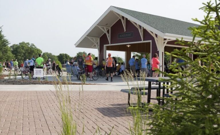 Based on our team’s Master Plan, the City of Bondurant immediately installed the shelter, trail section, and paved seating areas. The 0.7-acre Bondurant Regional Trailhead Park officially opened with a ribbon-cutting ceremony in 2013. In the intervening years, most of the other amenities have been added to the site as funds became available.