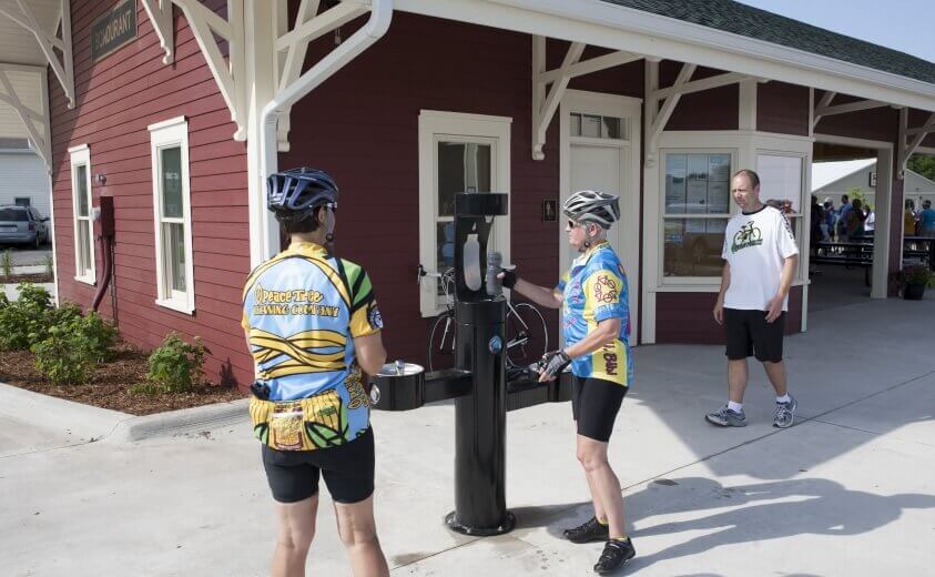 The water bottle filling station located by the trailhead shelter provides a much-needed amenity for trail users.