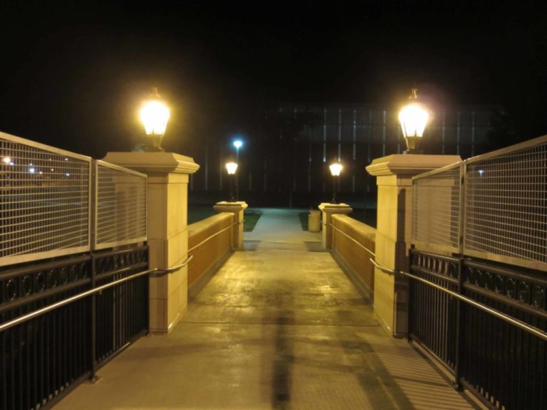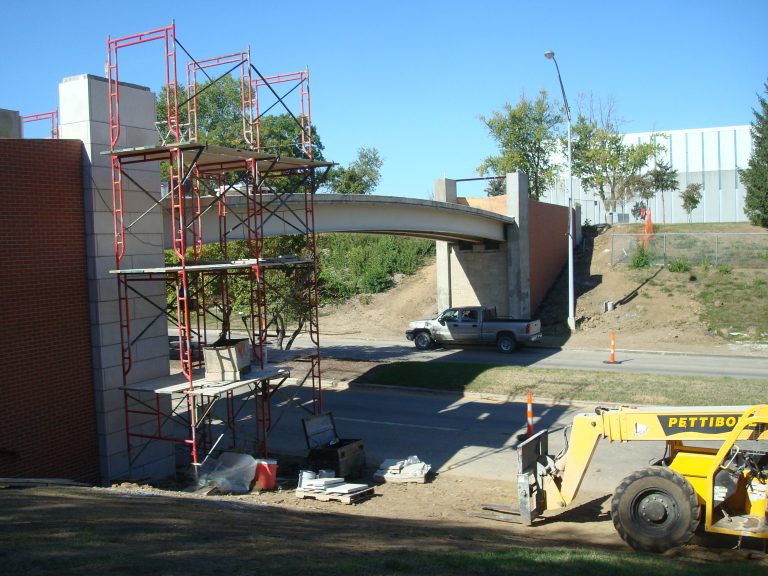Snyder & Associates and subsidiary Shuck-Britson provided structural design services on the rehabilitation of a 90 by 11-foot steel beam pedestrian bridge for the University of Northern Iowa. The project included the removal of a deteriorated canopy, rails, and lighting. Structural improvements to the footings were completed to expand the capacity of the structure. Aesthetic improvements included brick and limestone treatment, decorative steel railing, galvanized safety railing, handrails, and decorative lighting. Other improvements included deck repair, deck coating, and new expansion joints.