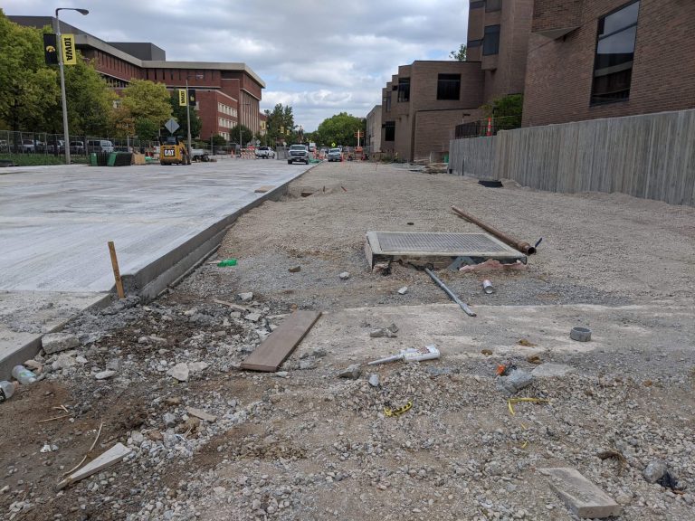 This project also includes a streetscape component aimed at restoring the surface features following the utility construction. The streetscape features include plantings, upgraded sidewalks and crosswalks, and other amenities targeted to the college students, such as convenient bike parking and multiple waste receptacles. Improvements to transit facilities, including bus stops and shelters, as well as safety improvements within the adjacent Seamans Center are also part of the project scope.
