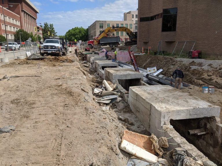 The labyrinth of utility networks running under the streets, homes, and businesses of Iowa City has sections that date to the mid-1800s. Several of these tunnels exist as conduits for steam pipes to heat buildings on the University of Iowa campus. One such passage, known as the Old Capitol tunnel, runs along the east curb line of Madison Street. Stretching from the Universities Power Plant to the Pentecrest, this tunnel is critical to the steam service on the east side of campus. It provides a path for condensate return to the Power Plant and completes a significant east campus steam loop providing operational reliability to the entire campus.