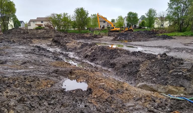 Originally constructed in the 1940s, Wildflower Pond on the outskirts of Ankeny began its life on the edge of a vast, rural homestead. By the time residential and commercial development began to overtake the area in 2004, the pond had filled with sediment which dramatically decreased its size, reduced the water’s quality, and resulted in overflow concerns during heavy rainstorms. After more than a decade of economic expansion, the entire 85-acre watershed surrounding the pond was filled with thriving neighborhoods and new business locations. City of Ankeny leaders contracted Snyder & Associates to develop a pond restoration plan in an effort to return Wildflower Pond to its former glory.