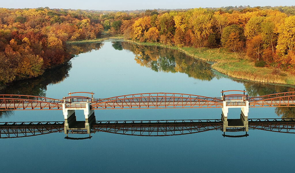 As part of the Easter Lake restoration project, a separate but coordinated component of the plan was the creation of a trail project to encompass the lake and connect with other area attractions. Named in honor of the former Iowa Natural Heritage Foundation (INHF) president Mark C. Ackelson, the trail project was designed by the Snyder & Associates team and included a signature trail bridge.